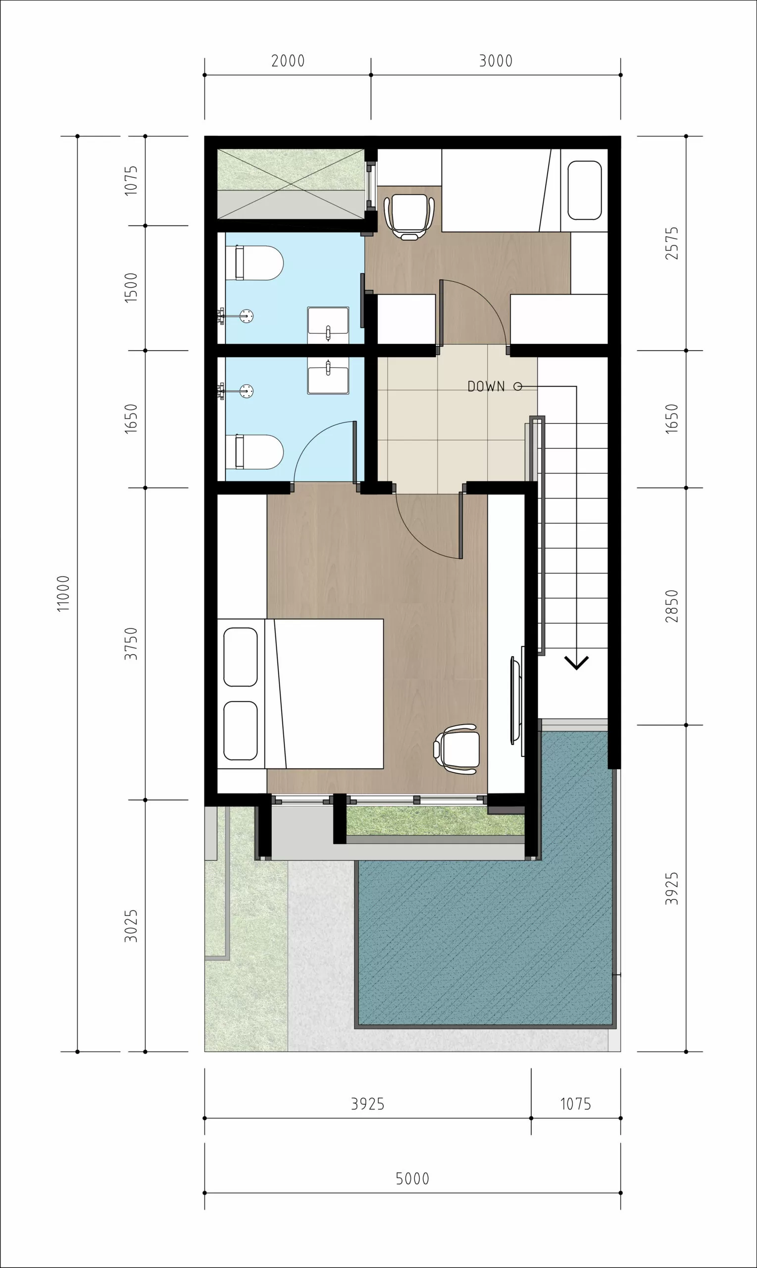 Rumah dua lantai dengan konsep minimalis natural khas resort di Bali memberikan kesan elegan namun tetap fungsional.